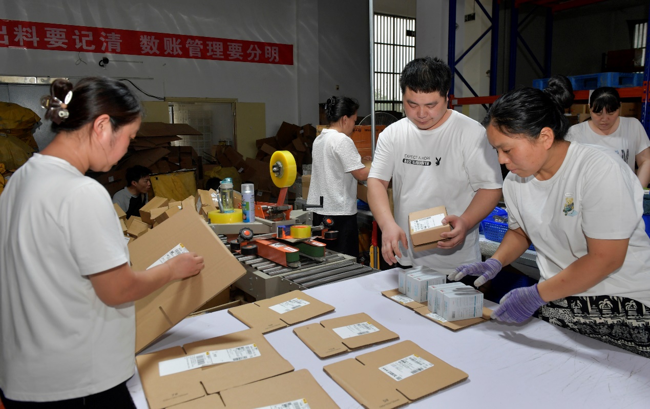 “現在一天發出近3000件,”劉菲抬起頭擦了把汗,臉上露出自豪的笑容,“這些貼着‘西藏阿里’的包裹,就是靠着拼多多‘千億扶持’的東風和對電商西進的支持,才能一路送到牧民手中。”話音未落,她抄起透明膠帶,“唰唰”幾聲,給紙箱封口處纏上牢固的“腰帶”,美工刀輕巧一劃,動作行雲流水。