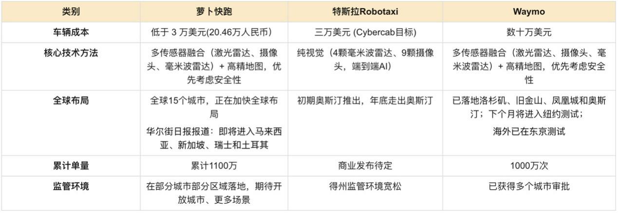 特斯拉上路,輿論一片叫好,這是自動駕駛商業化落地的又一個里程碑事件。特斯拉的技術能力有目共睹,特別是其 FSD(Full Self - Driving)功能在採用端到端技術後獲得了革命性的提升,促使包括中國在內的全球眾多新能源車企、芯片公司等紛紛投入研發端到端技術,引領了新一輪的產業發展和資本湧入浪潮。但我們也要看到,我國以蘿蔔快跑為代表的自動駕駛企業在不同技術路線上同樣取得了令人矚目的成績,它們一樣配得上鮮花與掌聲。與特斯拉純視覺策略相比,蘿蔔快跑集成了一套包括激光雷達、毫米波雷達等在內的 7 大類、多達 40 個傳感器的感知系統,並與高度精確的預先繪製的高精地圖相結合,為汽車在複雜路況與城市環境下行駛提供了良好的精度、冗餘和可靠性,最大程度保障駕乘人員的安全。而在價格層面,蘿蔔快跑 2.8 萬美元的自動駕駛車輛成本也低於特斯拉 3w 美元的成本,有着更高效的研發產出比。