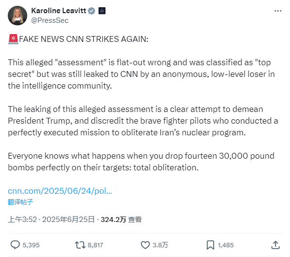 美軍6月23日空襲伊朗三處核設施後,美國政府和美國媒體突然吵作一團,美國有線電視新聞網(CNN)一條“伊朗核設施未被完全摧毀”的報道,受到了從白宮發言人到特朗普本人的“聯合圍剿”。