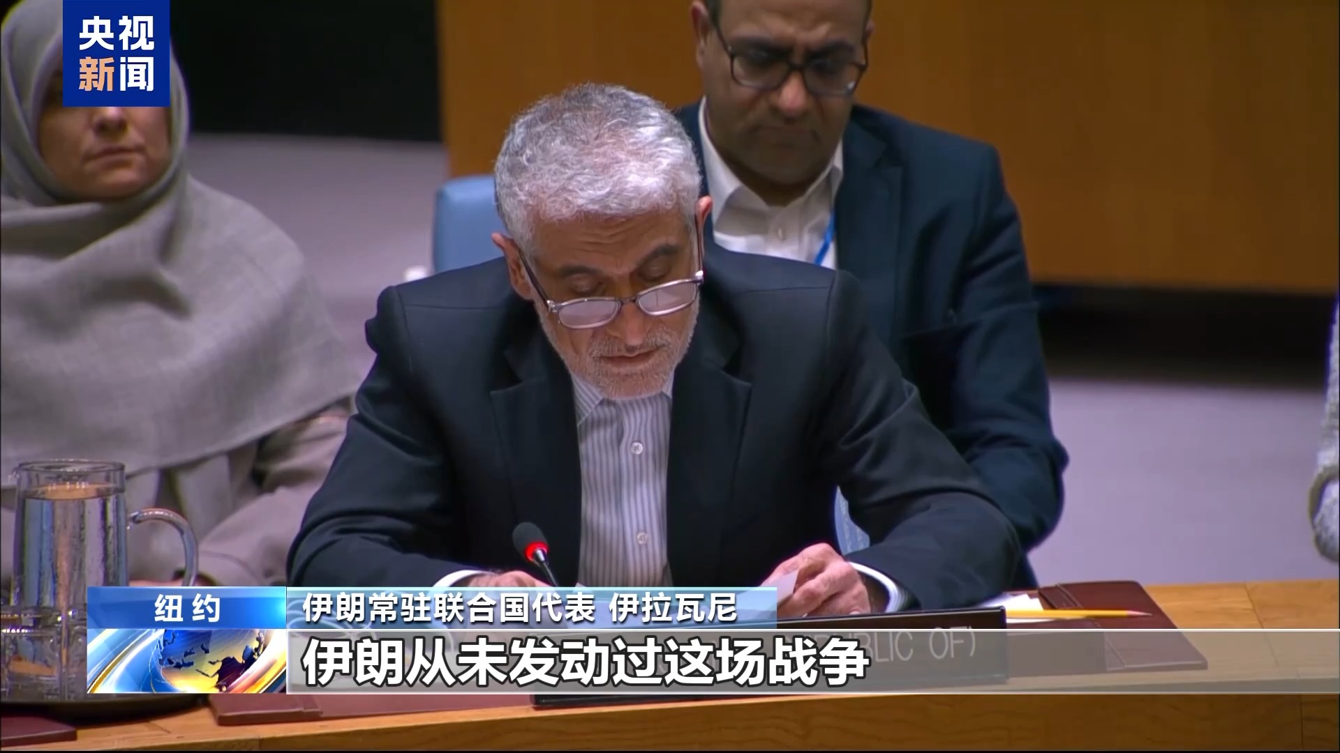 *伊朗常駐聯合國代表 伊拉瓦尼:*伊朗從未發動過這場戰爭,侵略者停止進攻之後,伊朗也停止了合法的軍事行動。然而伊朗不會容忍欺騙和雙重標準,我們的軍隊仍然做好充分準備,以應對任何進一步的威脅。