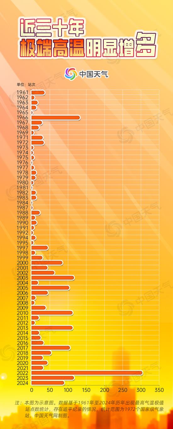 不僅如此,全國範圍內的高温極值也在逐年刷新。盤點國家氣象站近60年大數據發現,我國大部地區高温極值呈現出明顯增多的趨勢,尤其是近三十年格外明顯。