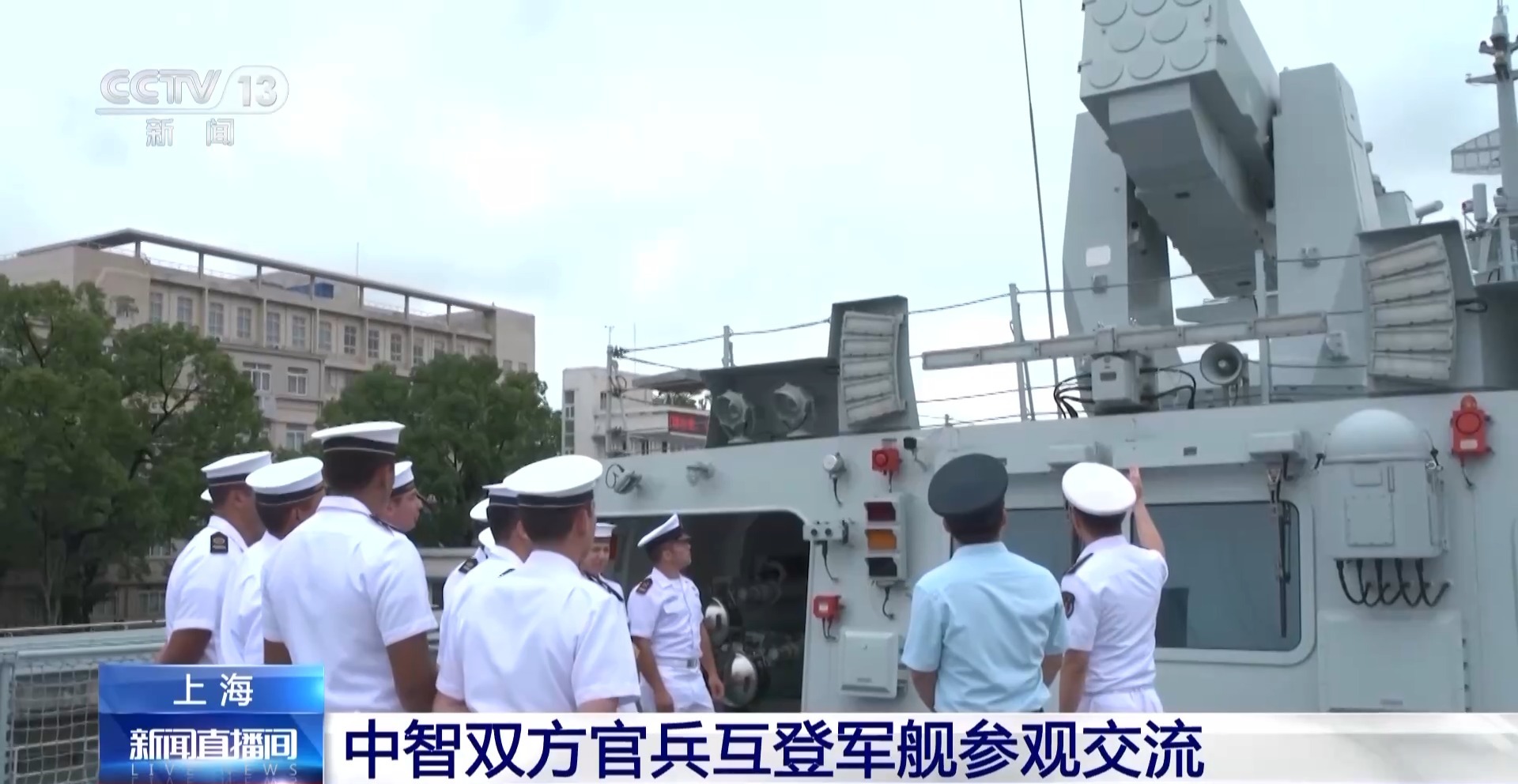 智方官兵登上中國海軍朔州艦,與中方官兵展開交流。朔州艦是我國自主設計建造的導彈護衞艦,具有較強的綜合作戰能力。