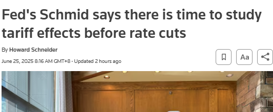 美聯儲施密德:決定降息之前,有時間研究關税對價格和經濟影響