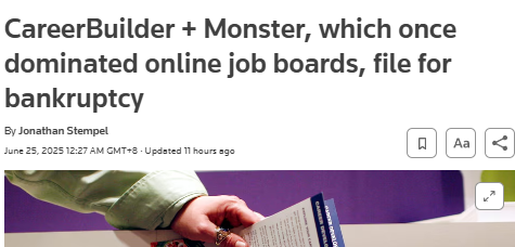 外媒:CareerBuilder + Monster申請破產,曾主導在線招聘行業