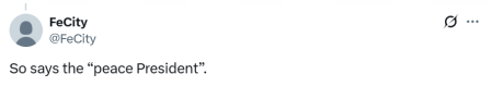 還有網友諷刺,“‘熱愛和平的總統’如是説。” ↓