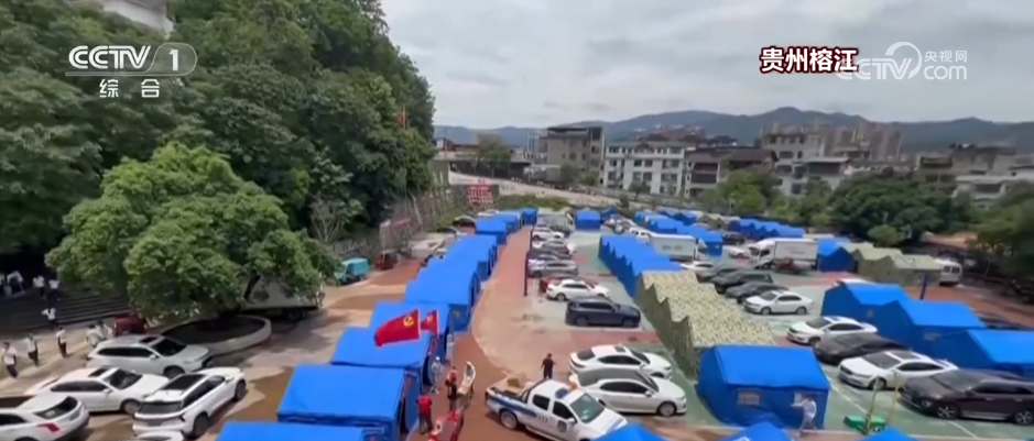 連日來,榕江縣防汛抗洪工作抓緊進行,當地消防、公安、武警等部門組成救援編隊,對受困羣眾持續開展搜救,在一棟住宅內,救援人員發現一位老人因患病無法自行撤離,便立即架設救援梯,展開救援。最終,老人被成功轉移至衝鋒舟,並迅速送往醫院檢查。截至目前,榕江縣已轉移羣眾5萬多人。當地黨員還組成多支服務隊,為集中安置點的羣眾提供食品、摺疊牀等生活物資,保障人們的基本生活。