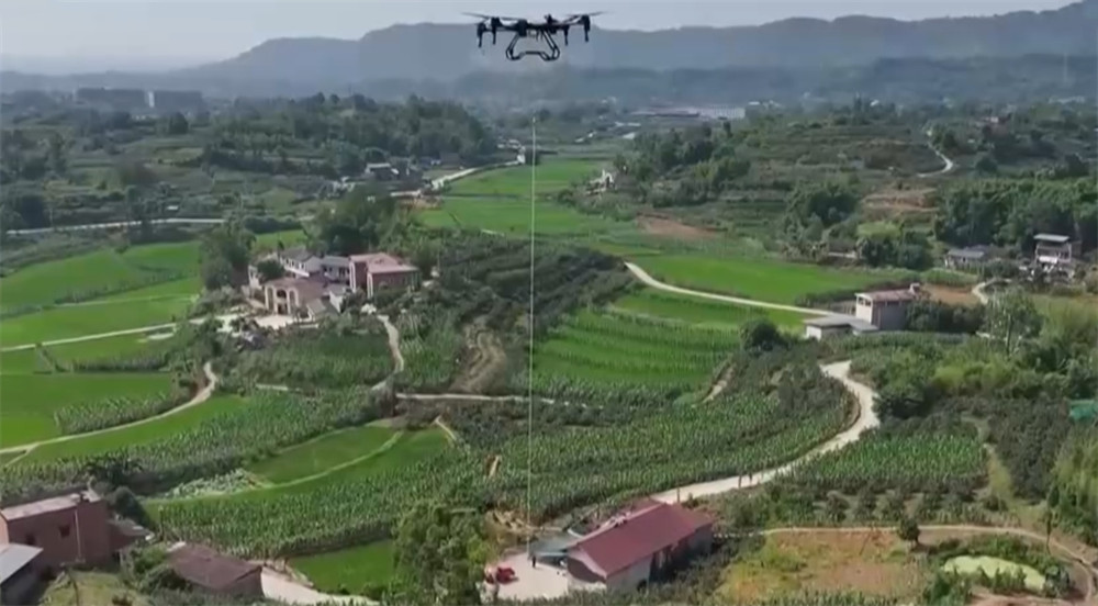 在重慶市江津區慈雲鎮花椒種植基地,漫山遍野的花椒樹進入採摘期,顆粒飽滿的青花椒香氣撲鼻、綴滿枝頭,椒農們穿梭在田間,將花椒枝條小心剪下、整齊碼放。種植基地上空,無人機正來回穿梭,一兩分鐘就將花椒從山上運送到山下的轉運點。
