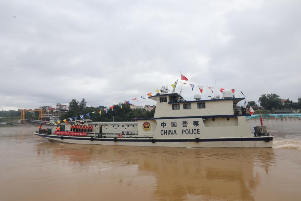 6月24日,在景哈警務碼頭,執法隊員整齊列隊,等待編隊啓航。(雲南省公安廳水上巡邏總隊供圖)