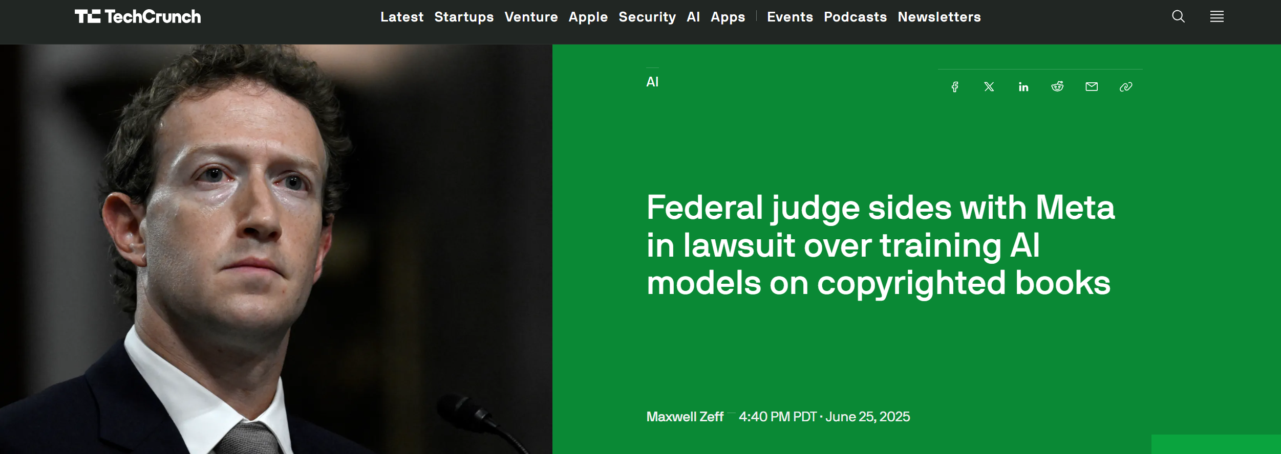 美聯邦法官在版權書籍訓練AI模型訴訟中支持Meta