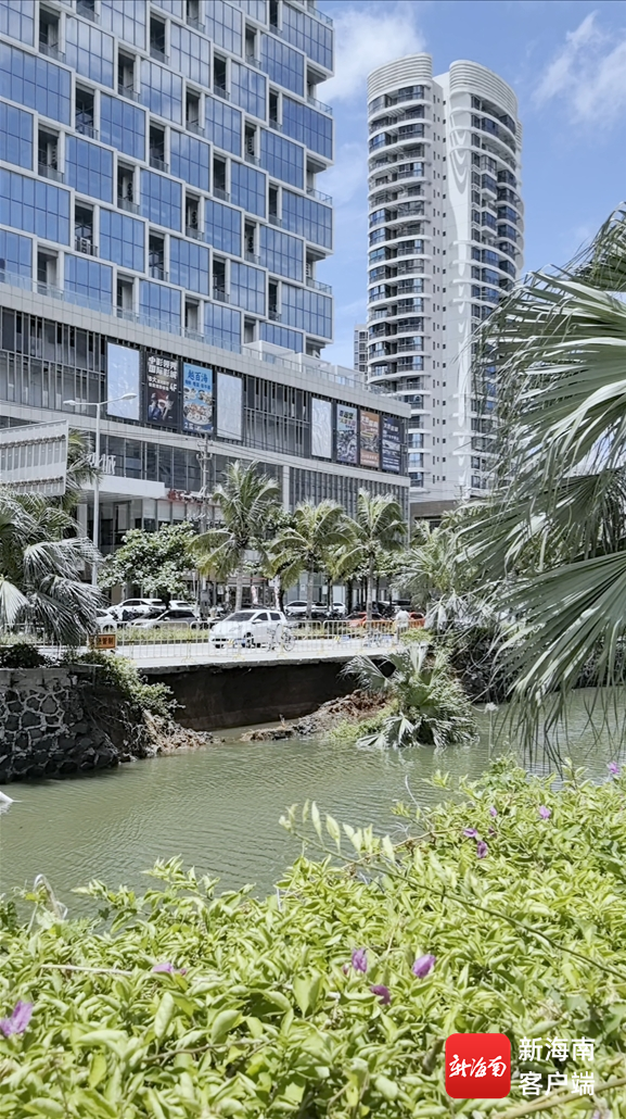 海口市海甸五西路安華領秀城路段,甸昆溝一處溝牆出現塌方(視頻截圖)。記者 韓星 攝