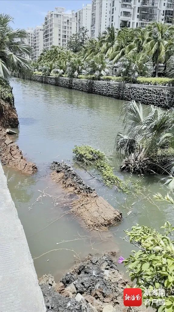 記者隨後聯繫了海口市排水設施事務中心美蘭排水設施養護大隊大隊長鬍曉飛。他告訴記者,當天上午,排水人員在路面巡查中發現溝牆塌方,立即組織人員開展搶修工作。“溝牆的綠化帶上種植了比較大的棕樹,根系錯綜複雜。受風雨影響,樹木倒下去的時候順帶着把溝牆也帶倒了。”胡曉飛猜測。