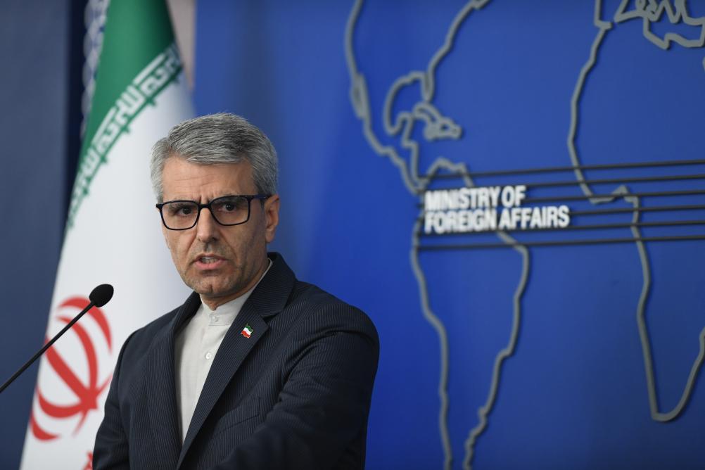 5月5日,伊朗外交部發言人巴加埃在德黑蘭出席新聞發佈會。新華社記者沙達提攝