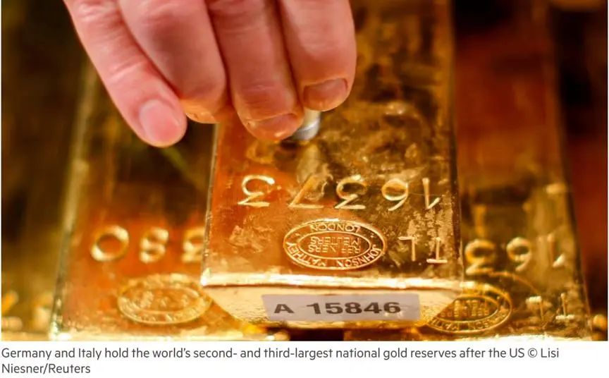 報道稱,根據世界黃金協會的數據,德國與意大利分別擁有全球第二與第三大黃金儲備,分別為3352噸和2452噸。兩國目前各自約三分之一的黃金存放在美國,市值約為2450億美元。