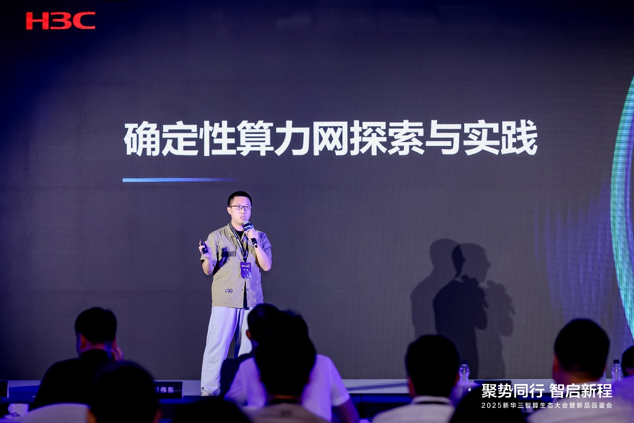 此外,紫金山實驗室未來網絡研究中心副主任張晨分享了關於確定性算力網的探索與實踐,並提到,確定性網絡具備了低時延、微抖動、零丟包等特性,相比於傳統網絡的“盡力而為”可實現“確保所需”。他認為,以確定性網絡為“新總線”構建我國的全國一體化算力網,可實現“全國一台超級計算機”戰略構想。他還介紹到,在新華三定製化確定性路由器等定向研發的助力下,未來網絡試驗設施(CENI)已在全球率先實現廣域確定性網絡大規模部署驗證,能夠提供低時延、低抖動、高通量、高可靠的網絡傳輸服務。