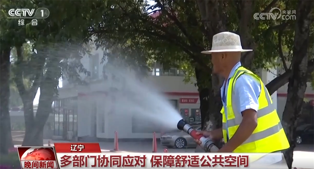 在遼寧瀋陽,為應對高温天氣,當地啓動高温天氣應急澆水保障模式,對城區主次幹道和公園廣場輪流澆水,並增加澆水頻次。城管環衞部門也出動灑水車和霧炮車,在大街小巷展開循環噴灑作業,為市民提供更舒適的公共空間。