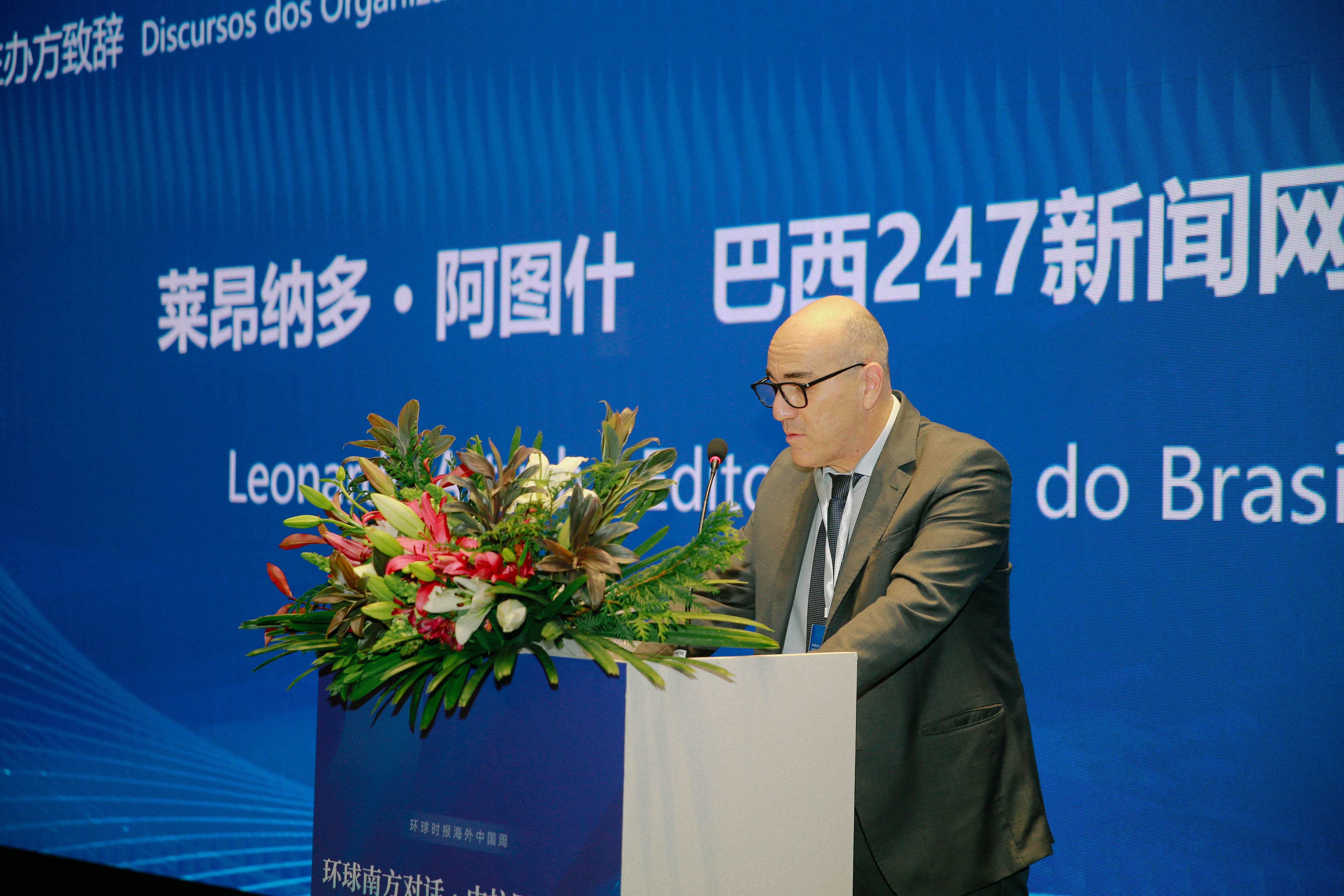 巴西247新聞網總編輯萊昂納多·阿圖什在致辭中表示,當前世界面臨重大沖突、地緣政治緊張與對人類未來的嚴峻威脅。在不穩定的國際環境中,巴西和中國成為全球和平的兩個重要支柱。兩國始終堅持理性與平衡,堅定維護國家主權、倡導多邊主義,並在所有外交場合中積極尋求通過協商解決爭端。中巴合作應拓展至更多關鍵領域,例如培養智力資源的大學、為長期戰略提供支持的智庫,以及在傳播文化、消除偏見與誤解方面發揮核心作用的媒體平台。