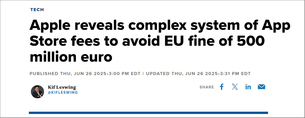 【環球網科技綜合報道】6月27日消息,據外媒報道,蘋果對其 App Store 歐洲政策進行了修改,稱新規將幫助該公司避免因違反《數字市場法案》而被處以罰款。