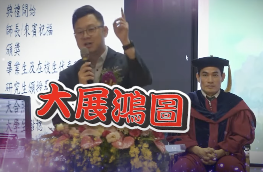 近日,台中市數位發展局局長林谷隆在一場畢業典禮致辭中提及大陸網絡“神曲”《大展鴻圖》,引發爭議。(視頻截圖自台灣媒體Nownews新聞網報道)