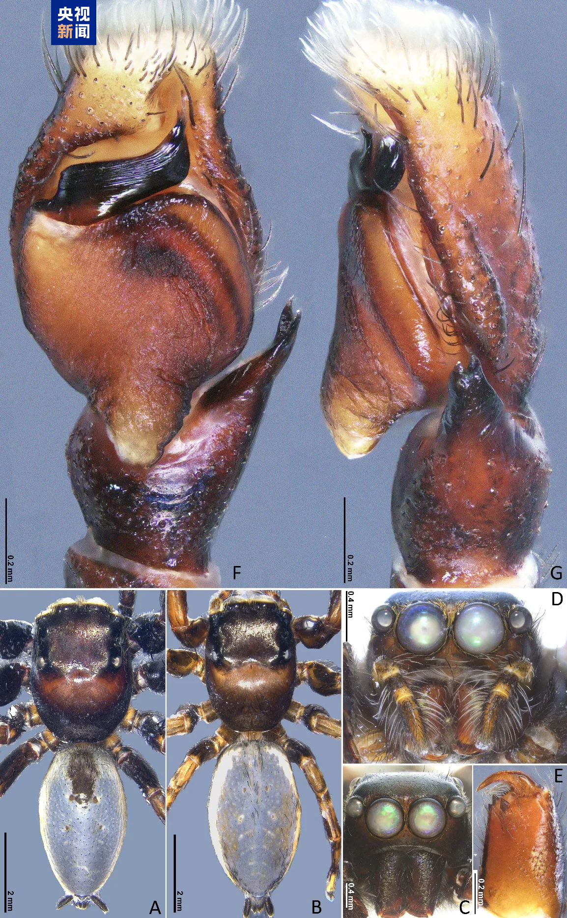 6月27日,記者從廣西花坪國家級自然保護區瞭解,該*保護區發現了跳蛛新種——花坪尼格蛛。*該物種是河北大學蛛形學實驗室研究團隊在保護區開展蛛形綱物種調查時發現的。