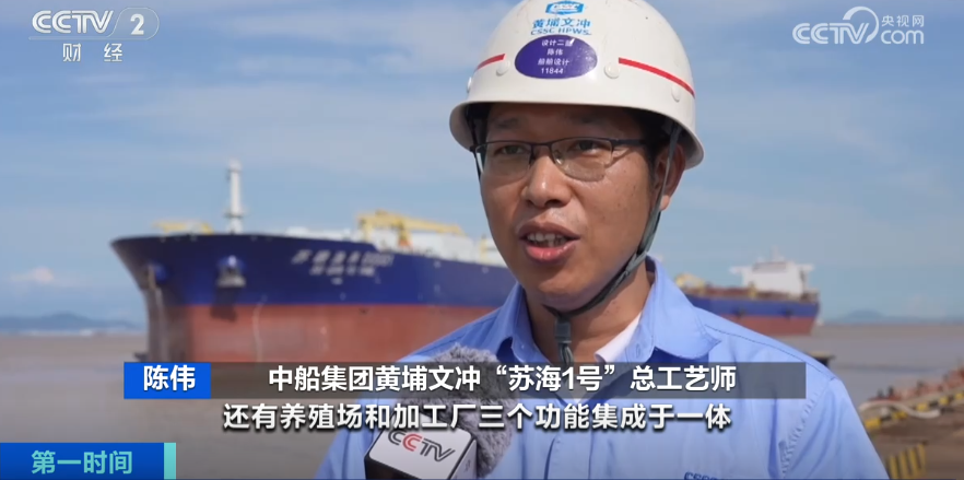 中船集團黃埔文衝“蘇海1號”總工藝師 陳偉:“蘇海1號”的難點在於將船舶、養殖場和加工廠三個功能集成於一體,這要求我們將船舶工程、養殖技術、食品加工的跨行業知識整合成複雜工程管理。作為全球首艘三文魚養殖工船,“蘇海1號”的成功交付,在我國現代海洋漁業高質量發展的新徵程上具有重要里程碑意義,預示着未來的國內海鮮消費市場將大大降低對冰鮮三文魚的進口依賴。