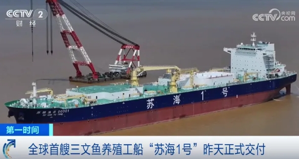 26日,全球首艘三文魚養殖工船“蘇海1號”,在廣州南沙正式交付。