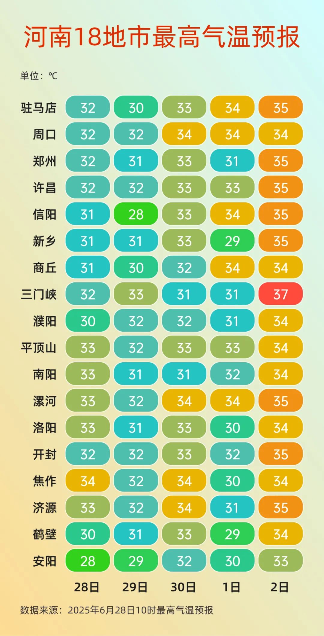 受降水影響,近期我省最高氣温多在30℃左右,但空氣濕度大,體感悶熱。7月2日,隨着大範圍陣性降水的收尾,多地如鄭州、洛陽、駐馬店等地將再次迎來35℃+的高温天氣!