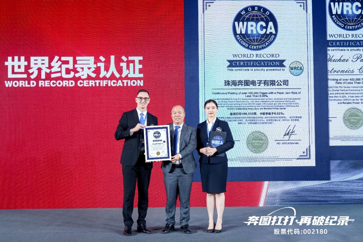 世界紀錄認證機構WRCA為奔圖頒佈“世界卓越的扛打耐用打印機”證書