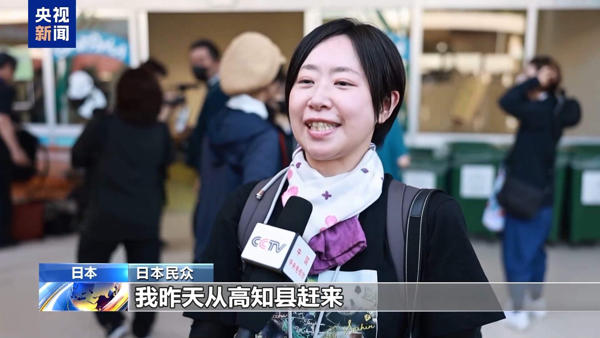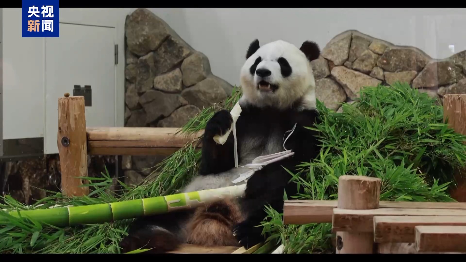*總枱記者 劉耀鴻:*這裏就是旅日大熊貓良浜和彩浜生活的大熊貓館。大家可以看到,現在在我身旁正在被眾多日本民眾圍觀拍照的,就是旅日大熊貓良浜。馬上它就要和自己的三個孩子一起返回中國。許多日本人也是專程從日本全國各地趕來,只為在回國前能夠再看它們一眼。