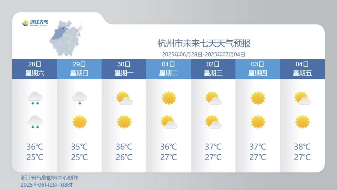 以省會杭州為例,最近幾天天氣一天熱過一天,昨天(6月27日)以37.6℃的最高氣温再次刷新了今年新高,走在大街上,熱浪撲面而來,彷彿置身於巨大的蒸籠之中。