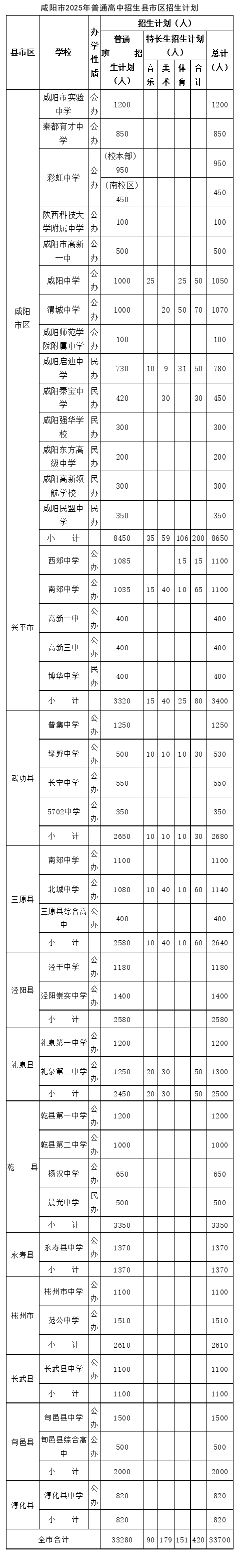 咸陽市2025年普通高中招生工作方案