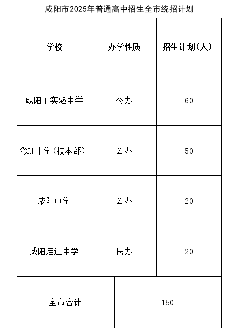 全市統招計劃是指市區內部分省級示範高中(即咸陽市實驗中學、彩虹中學、咸陽中學、咸陽啓迪中學)面向市區以外的縣市招生的計劃。全市統招計劃未錄滿的,餘額調配至縣市區招生計劃。
