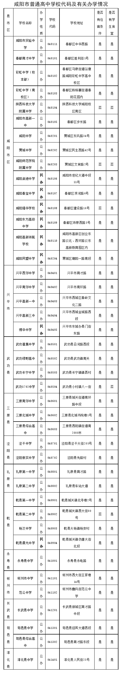 咸陽市普通高中學校
