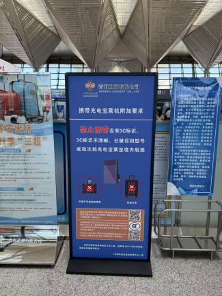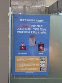 *A:*按照民航局相關要求,自6月28日起,將增加充電寶攜帶查驗新政策,沒有3C標識、3C標識不清晰、被召回型號或批次的充電寶將禁止攜帶乘機,機場各個區域已對充電寶攜帶新政策張貼宣傳告知。