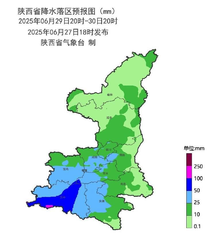預計今天下午至傍晚西安市有分散性雷陣雨或陣雨。受低槽東移影響,29日夜間至30日夜間西安市將有一次明顯的降雨天氣過程,全市以小到中雨為主,偏西偏南地區大雨,過程期間伴有雷暴大風、短時強降水、冰雹等對流性天氣。7月1-5日我市仍多雷陣雨或陣雨天氣。
