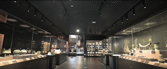 碩大篆書“史”字高懸於建築外牆,兩座西周銅犧尊造型石像矗立門前……走進中國歷史研究院中國考古博物館,彷彿叩開了中華文明探源的大門。