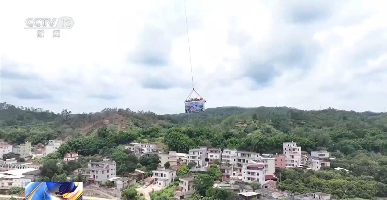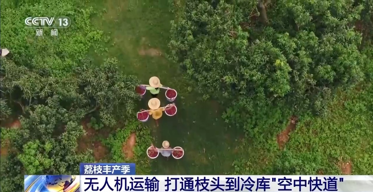 然而,今年,這裏有了新變化。果農們將荔枝從枝頭採摘、裝箱後,就有運輸無人機滿載荔枝從山頭果園騰空而起,沿預定航線飛向山下的冷鏈中心。