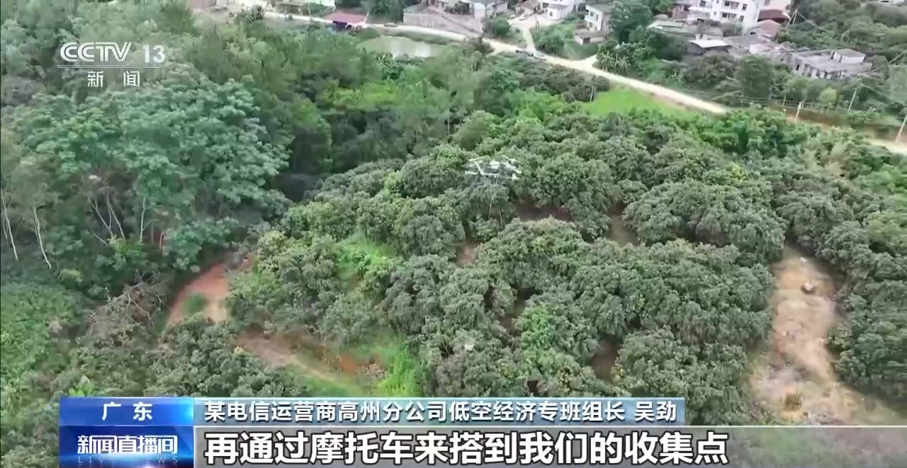 某電信運營商高州分公司低空經濟專班組長**吳勁:無人機每斤運輸成本是非常低的,大概1毛5左右,而傳統運輸需要從山上肩挑下來,再通過摩托車搭到收集點,粗略估算大概每斤成本4毛到5毛,所以運輸成本大幅降低了。