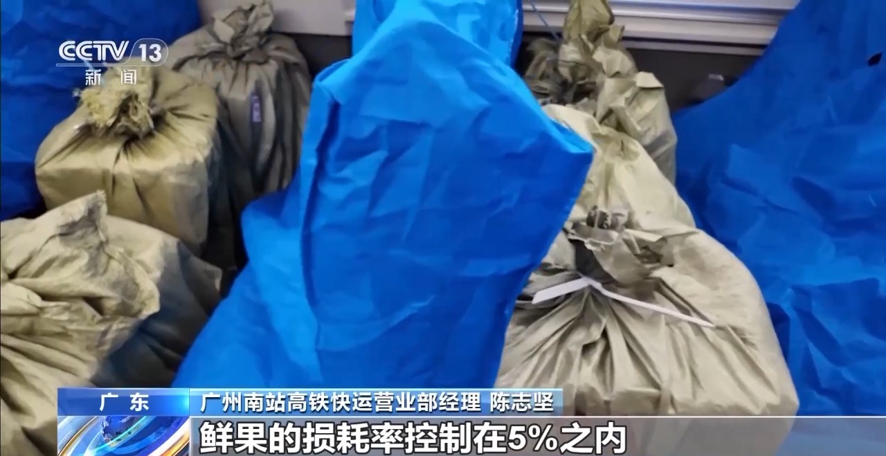 廣州南站高鐵快運營業部經理 陳志堅:在車廂內我們有温濕度監控,温度一般都在22攝氏度左右,鮮果的損耗率控制在5%之內。