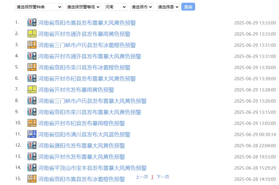 7月1日,多雲,有陣雨、雷陣雨。另據@河南氣象,截止到6月29日中午13:33分,河南生效中的氣象災害預警共15個,請大家外出注意防範。