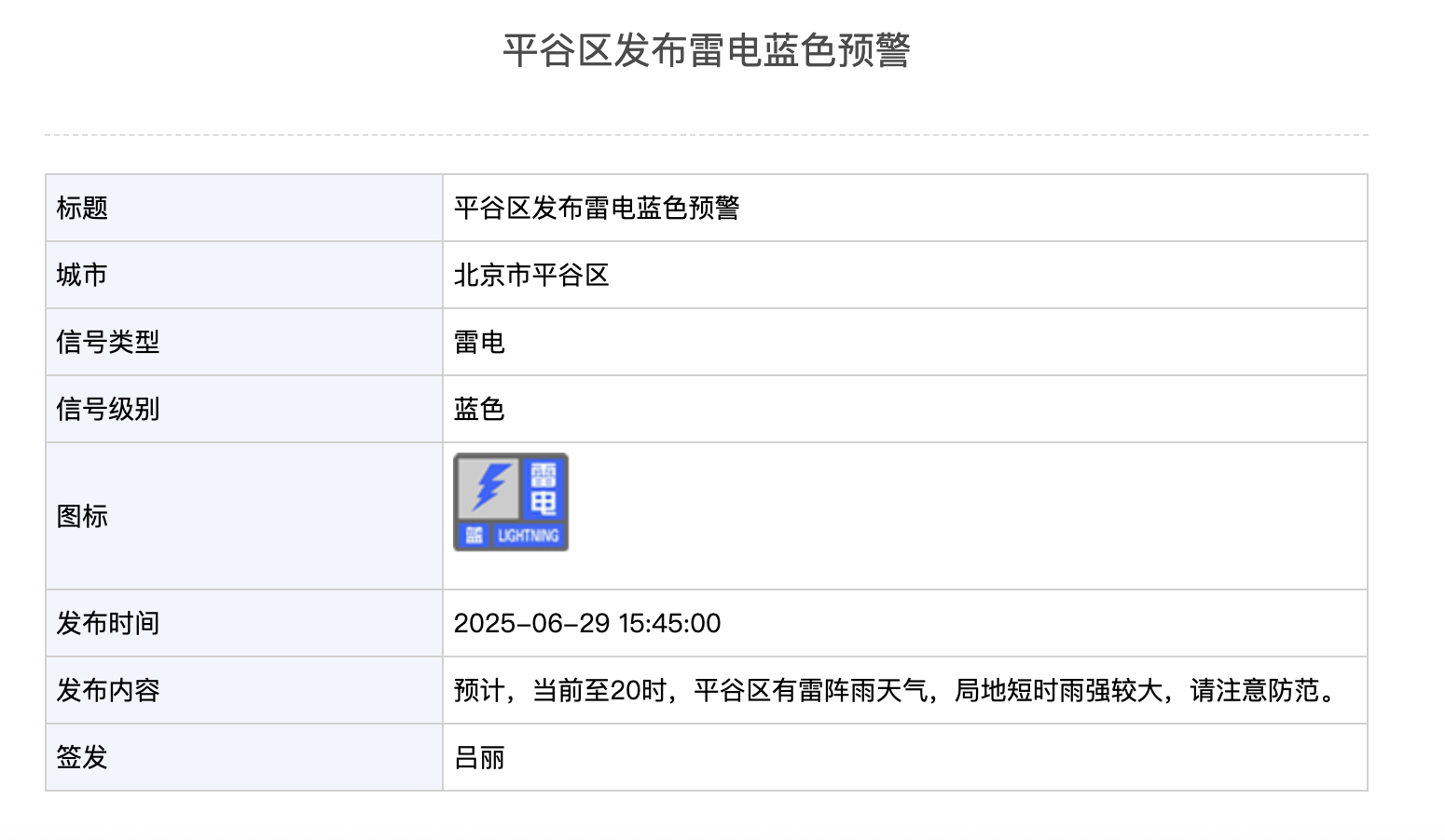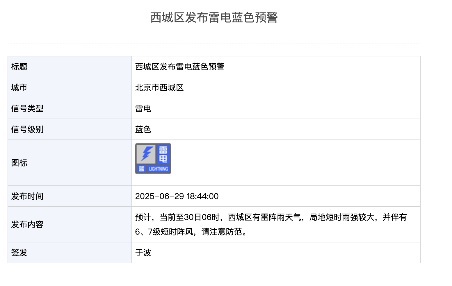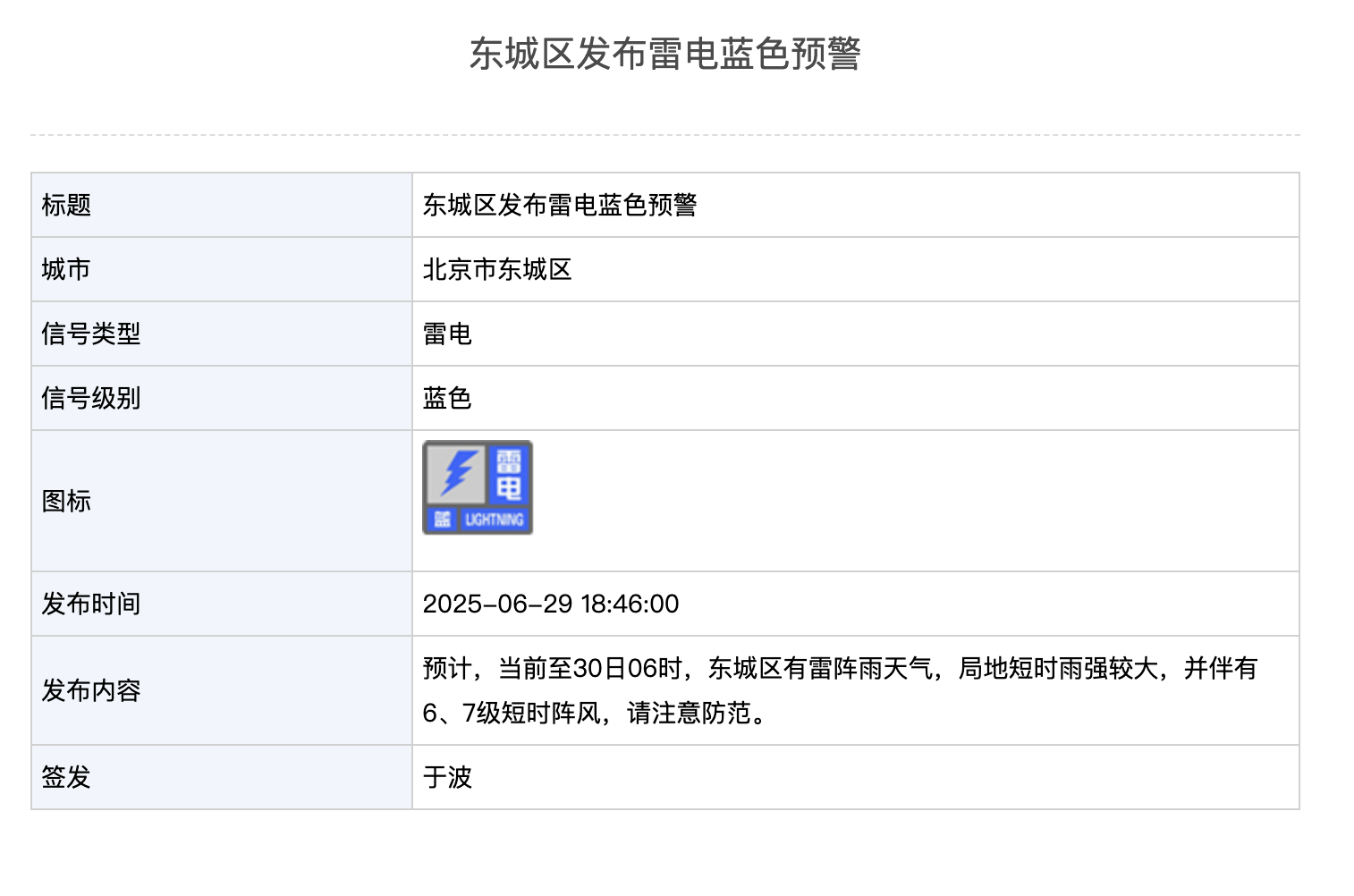 北京東城、西城、海淀等11區發佈雷電藍色預警