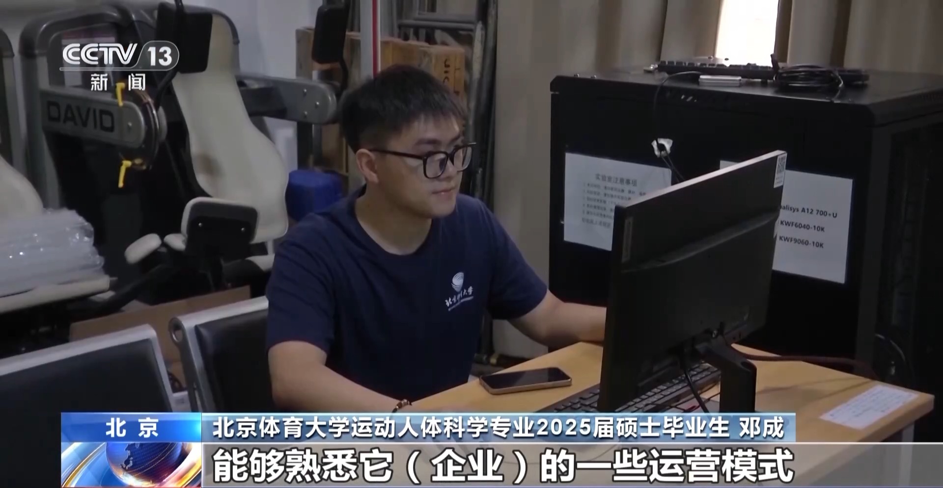 在北京體育大學實驗室,應屆碩士畢業生鄧成正在進行運動鞋的性能測試實驗。巴黎奧運賽場上,助力舉重運動員李發彬擎起槓鈴的赤紅戰靴,正是北體-安踏運動科技研發中心的科技結晶,鄧成也參與了這個項目的實驗,因此順利獲得了安踏集團的錄取通知。