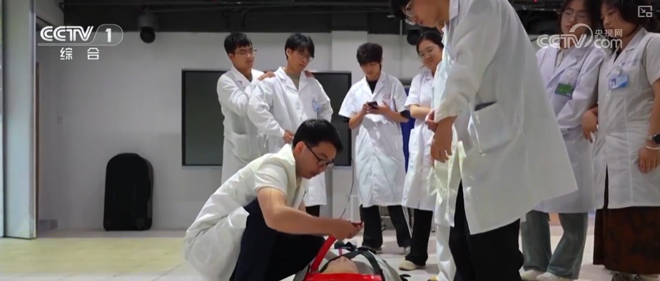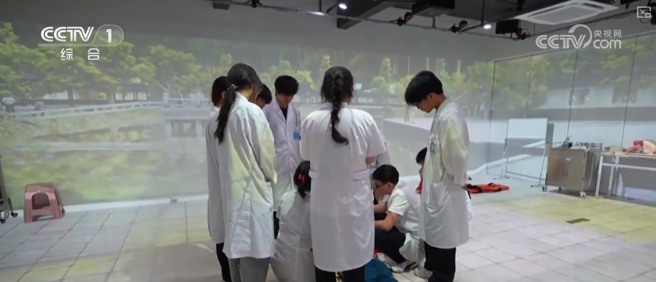 在南昌大學第一附屬醫院的模擬實訓基地,同學們通過VR體驗的方式,學習掌握老人們在逛公園或者遛彎時,如果突發疾病如何進行院前處置、快速評估老人身體情況實施救護管理、救護車到來後配合醫務人員完成院前處置流程,這些在現實場景中常會碰見的突發情況的處理,未來也都是老年醫學與健康專業學生們的必修課。