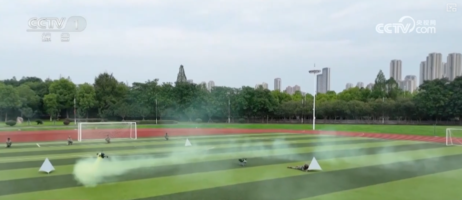 在信息支援部隊工程大學的校園裏,無人機在天上飛、機器狗在地上跑,配合得非常默契。學員們先是派出偵察無人機悄悄鎖定“敵”方的位置和動態,情報一到,攻擊無人機立馬掛彈俯衝,精準到位。這波操作,有點兒像在看未來戰爭大片。