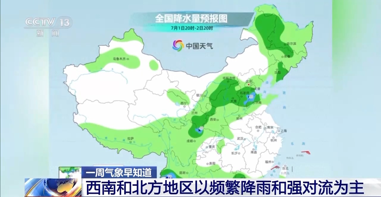 西南和北方地區,本週主要是關注頻繁的降雨和強對流天氣的影響。今天在四川東北部一帶還是會有強降雨出現,在華北、東北,今明兩天也會有一些分散性陣雨或雷陣雨,局地能達到大到暴雨的量級。隨後週三到週五,在東北、華北、西北地區東部以及四川、雲南等地還會有一輪明顯的降雨過程。在這種降雨頻繁的情況下,一是注意常備雨具,另外出行還有户外活動的時候,儘量避開雨勢較大,有強對流天氣的時段。