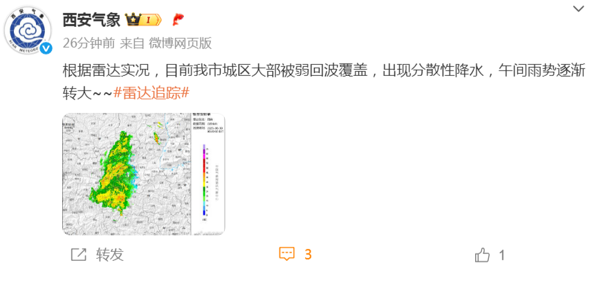 據@西安氣象 消息