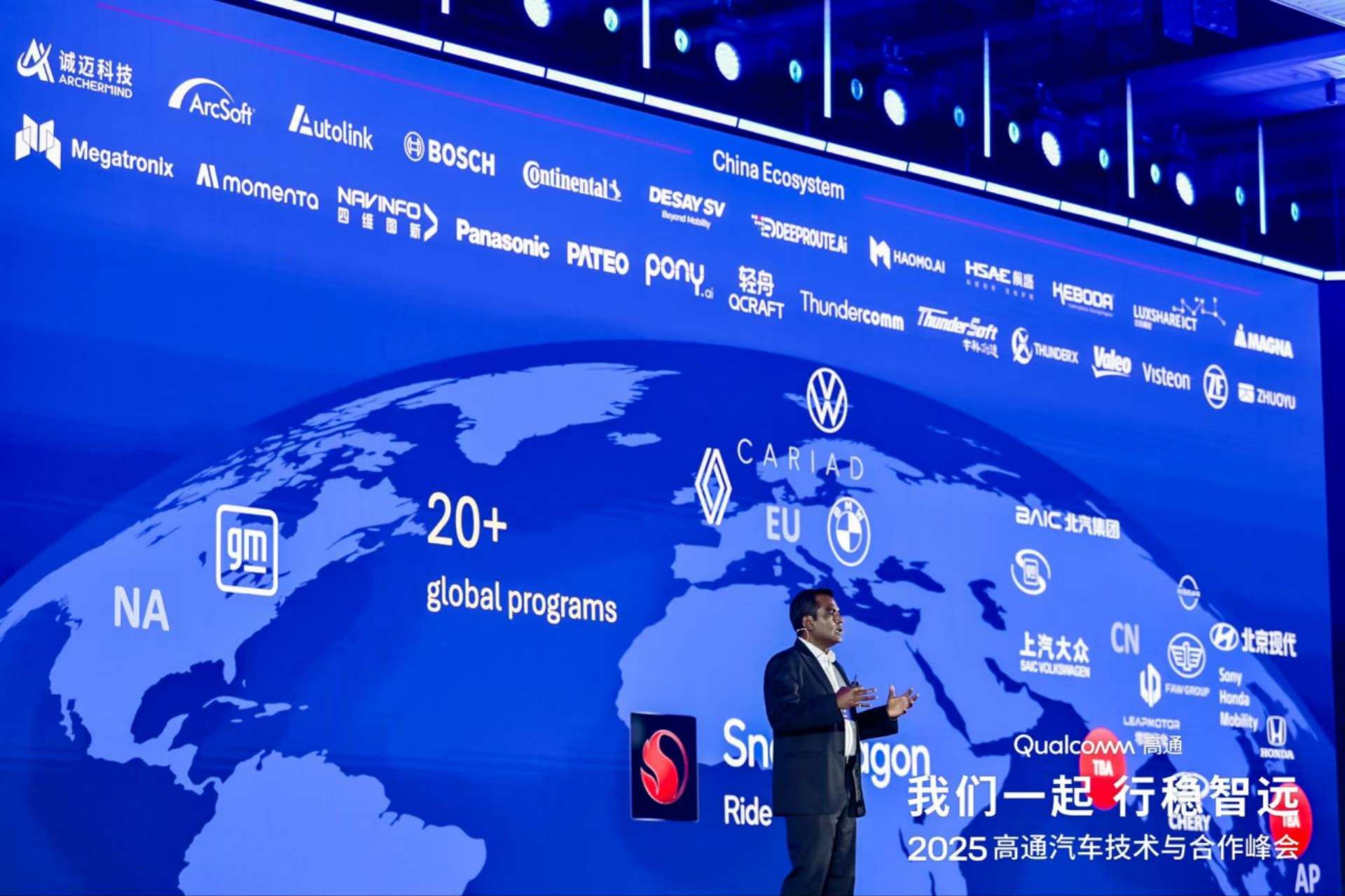 Anshuman在演講中回顧了高通ADAS生態的發展歷程。2023年首屆高通汽車技術與合作峯會時,高通在ADAS領域尚處發展初期;而到了2025年,基於Snapdragon Ride平台的合作項目在兩年內將在全球拓展至20個,覆蓋北美、歐洲、中國等主要汽車市場。