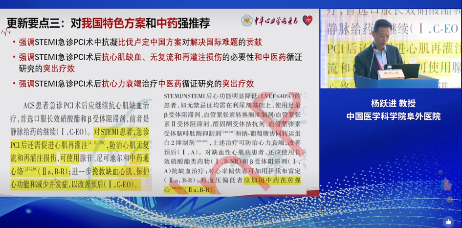 同樣是楊躍進教授團隊開展的“中國通心絡治療急性心肌梗死心肌保護研究(CTS-AMI研究)”結果顯示,在標化西藥與血運重建基礎上,通心絡可進一步降低30天心腦血管不良事件率36%,降低心源性死亡風險30%;降低1年心源性死亡率27%,降低1年再次心梗風險74%,且未增加出血風險。這一成果發表於《美國醫學會雜誌》(JAMA)上,被評價為“近十年心梗藥物治療的重大突破”。