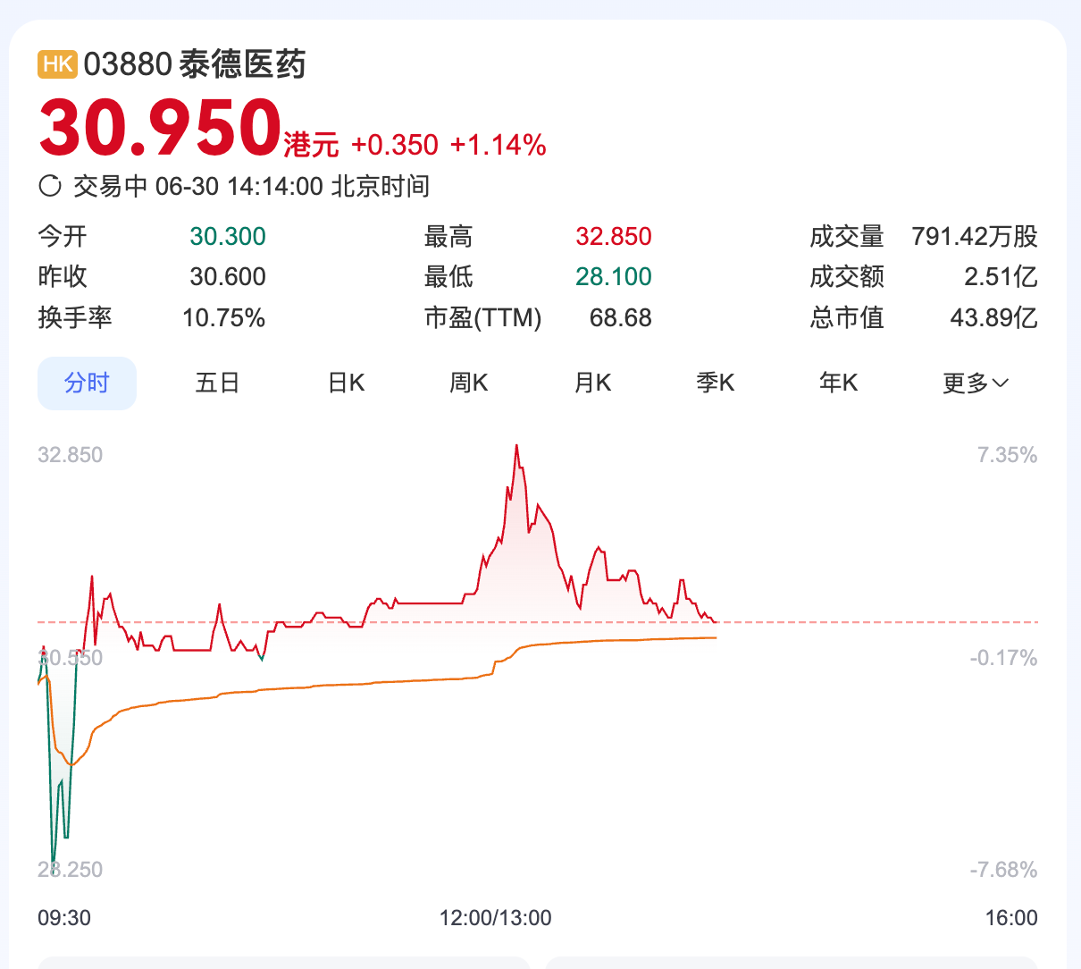 泰德醫藥在港上市,市值超43億港元