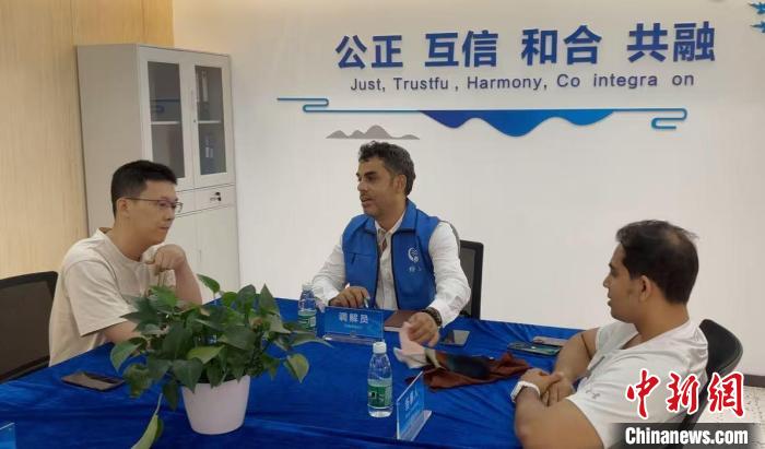 “生產方把顏色做淺了一點,採購方在出貨的時候沒有及時確認布料顏色,雙方都有責任,咱們可不可以各讓一步?”在浙江省紹興市柯橋區一間調解室裏,來自黎巴嫩的“洋孃舅”李天明熟練地運用中英文,化解雙方對立情緒,引導彼此讓步和解。