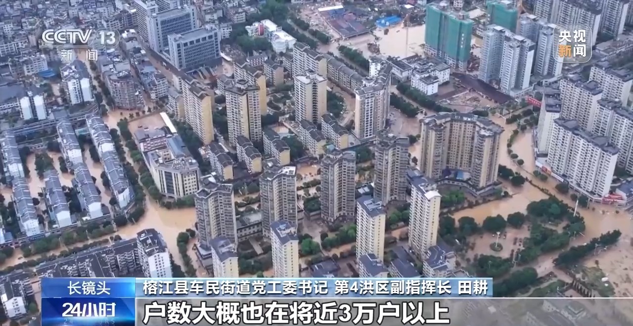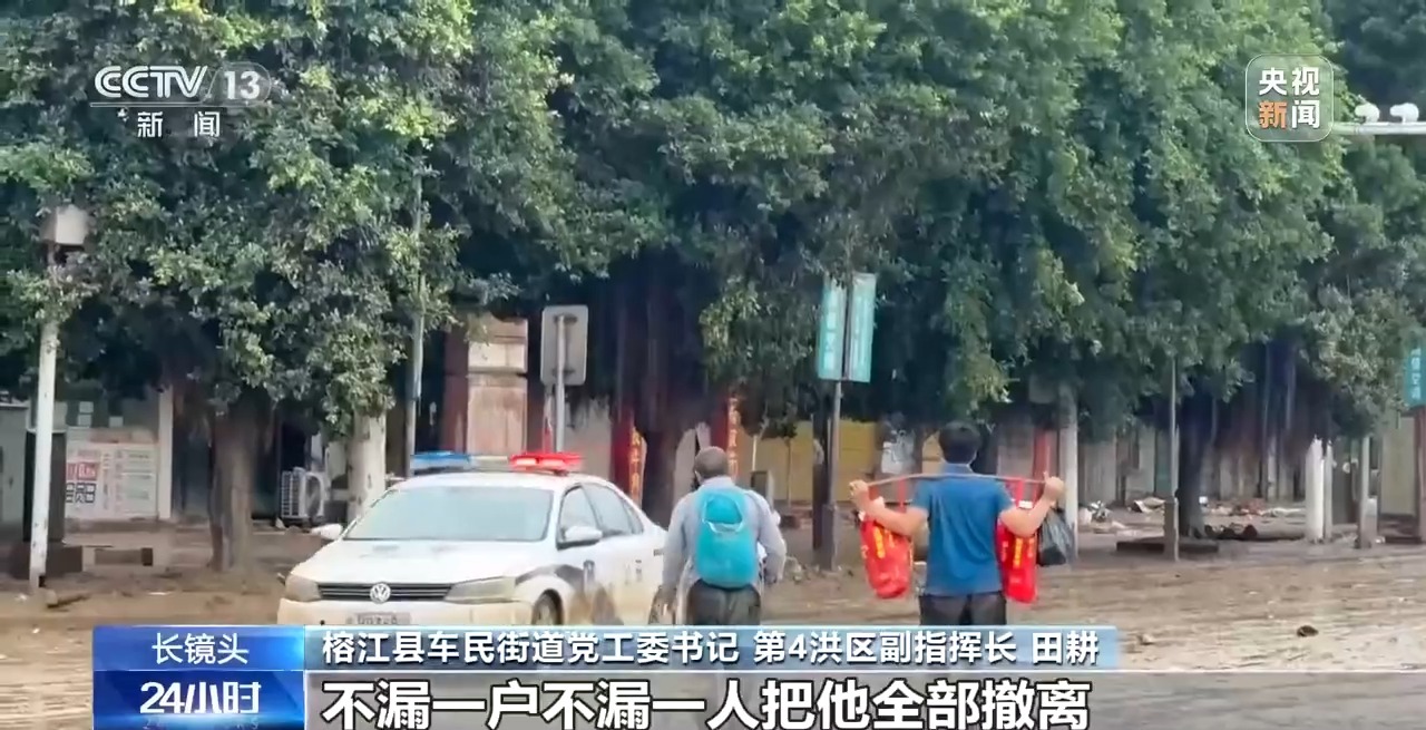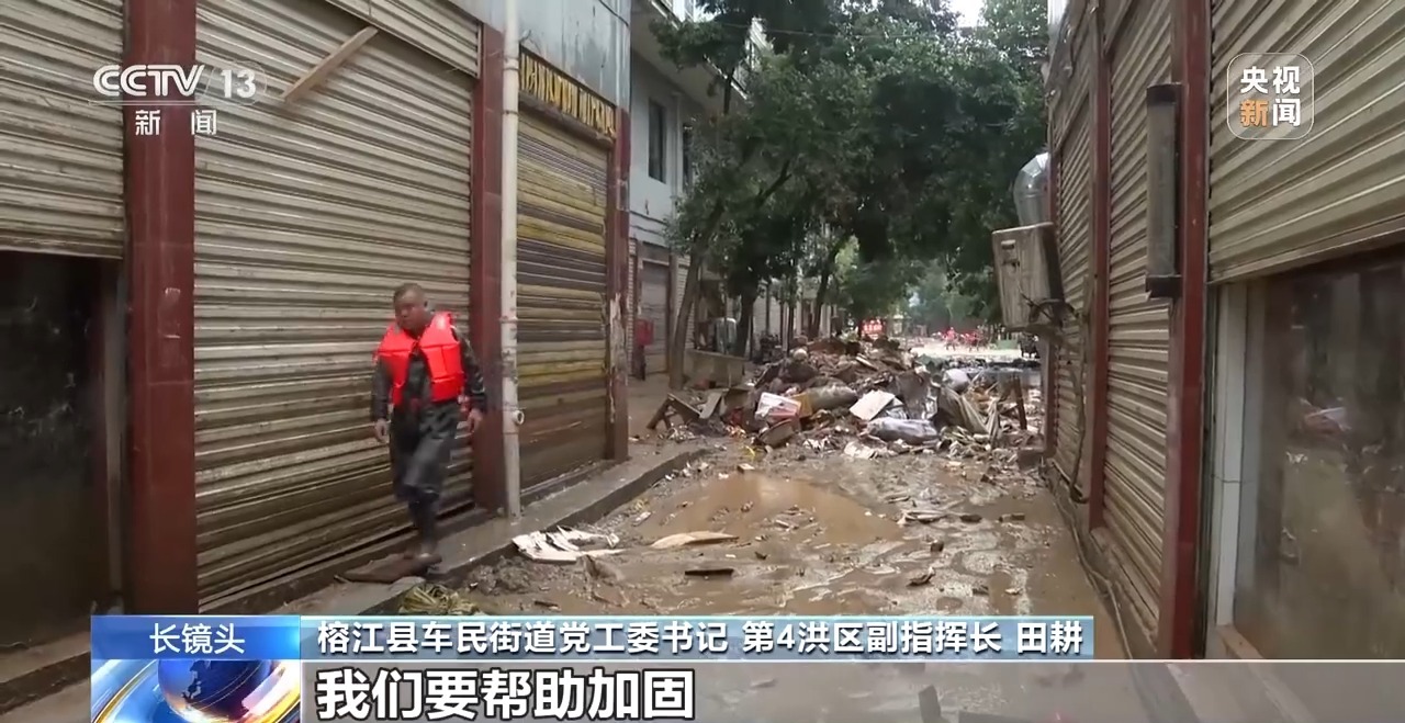 *榕江縣車民街道黨工委書記 第4洪區副指揮長 田耕:*4號洪區大概就是6萬多人,户數大概也在將近3萬户以上。現在來説就是和來支援我們的兄弟縣的民兵,我們一起再到洪區裏面,對低窪地帶的小區,看還有沒有人員,把他們勸離疏導出來。同時看還有其他什麼險情的地方,我們要幫助加固。